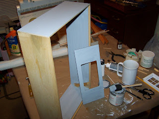 And here is the box completed. I even added the crown moulding on the ceiling. Oh my what a hassle that was cutting all those angles. But I managed to do it adventually. Took a few cuts before I got them right! HA!